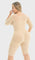 Faja larga de mediana compresión, brinda ajuste moderado, moldeando y ayudando a evitar la retención de líquidos e inflamación después de la cirugía; tiene espalda cubierta y mangas 3/4 que brinda mayor cubrimiento en axilas y espalda, ideal para cirugías en las que se interviene zonas como espalda alta y brazos; cuenta con brasier prehormado para aquellas personas que se realizan a la misma vez mamoplastia, es recomendada también para uso diario.